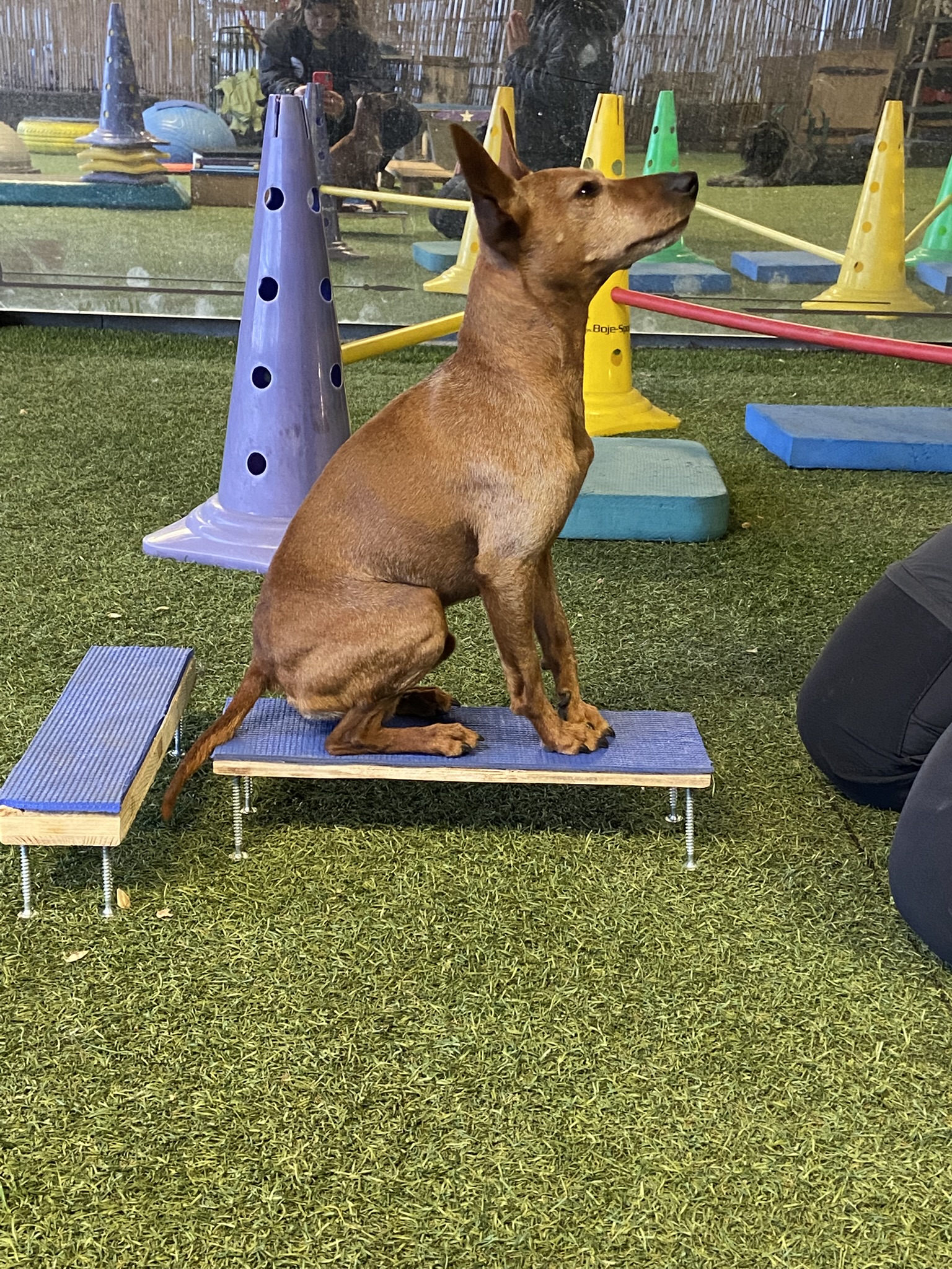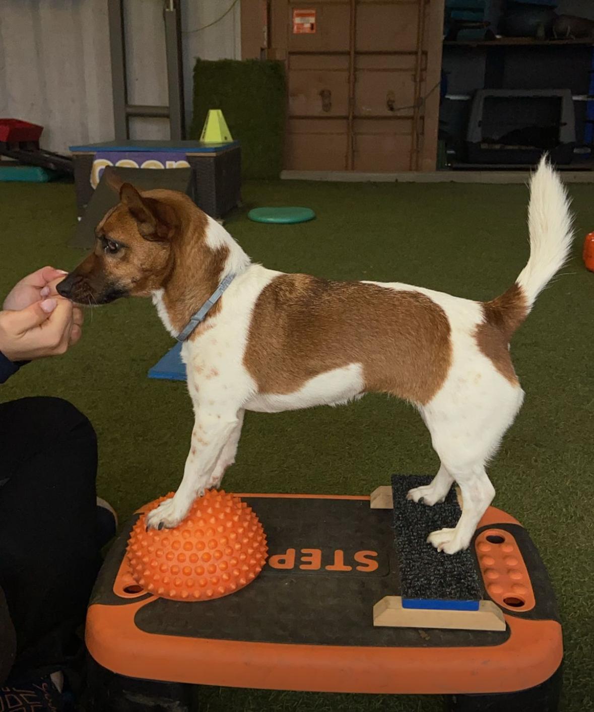 La cagnolina in foto, nonostante l’abitudine di portarla spesso a camminare in montagna, all’età di 8 anni, stava iniziando a perdere, piuttosto in fretta, l’abbondante muscolatura che l’ aveva sempre contraddistinta, infatti era diventata molto più incerta nei salti (è abituata a saltarmi in braccio da ferma) e aveva anche perso peso e definizione muscolare. Questo cane è anche sempre stato molto diffidente con chiunque non conoscesse, non riuscendo mai a lavorare con qualcuno che non fosse della famiglia. Non mi ha sorpreso tanto il vederle riprendere muscolo e confidenza nei salti, avevo già visto degli ottimi risultati in termini di aumento di massa muscolare e aumento nella sicurezza dei gesti in un altro cane, quello che mi ha lasciato di sasso è stato vedere questo animale tanto diffidente amare lo sport, al punto di cercare di entrare in palestra prima del suo turno e persino di farsi toccare da Francesca già dalle prime lezioni. Oltre agli ottimi risultati un’ altra nota di merito va alla passione, e competenza, che Francesca mette nello spiegare la disciplina, rendendola interessante e comprensibile sia a chi ha già delle basi di anatomia e biomeccanica sia a chi è completamente digiuno dell’ argomento.